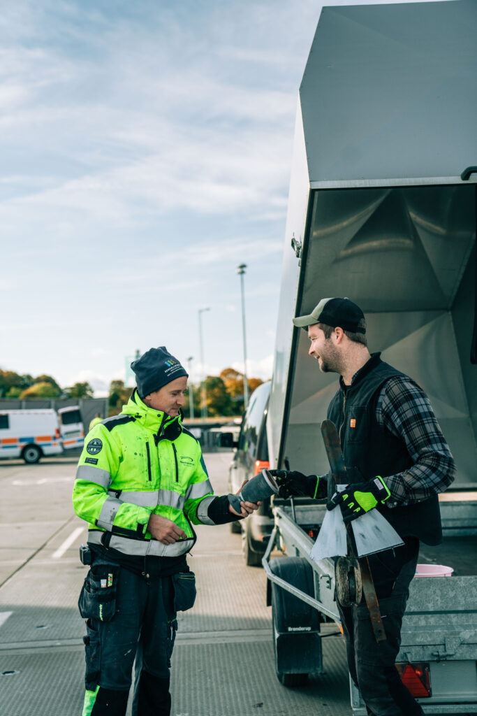 När du kör in på Returen kommer mottagningen av återbruk vara det första du möter. Här kan du lämna prylar och byggmaterial som någon annan kan ha nytta av.